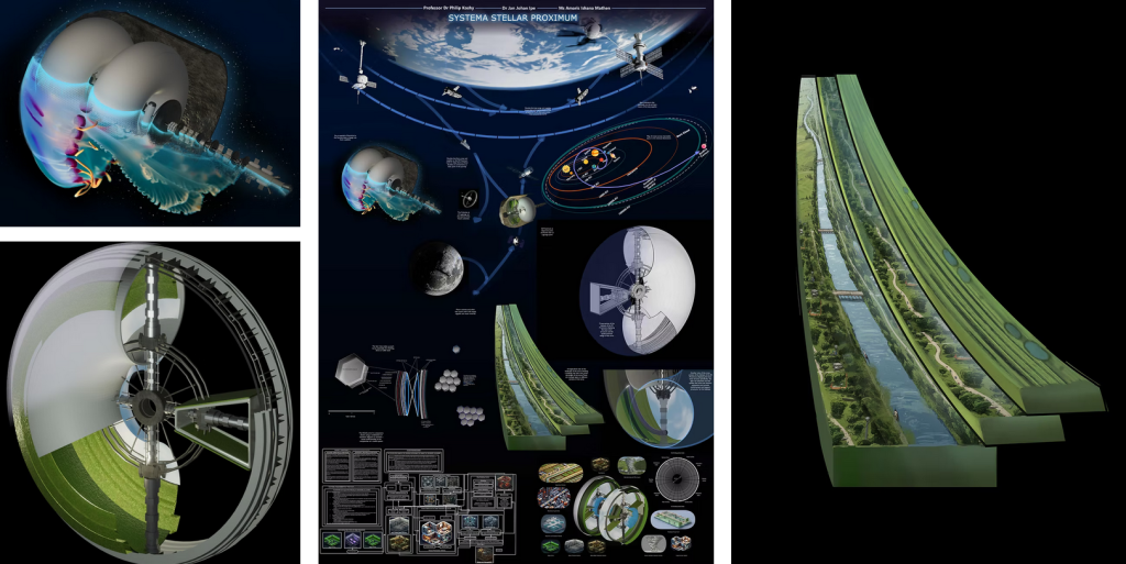 „A Systema Stellare Proximum projekt különlegessége a lenyűgöző történetmesélés, amely zökkenőmentesen kapcsolja össze a technológiai, társadalmi és kulturális elemeket. A koncepció gazdag, fantáziadús narratívát kínál, amely átgondoltan tárja fel a hosszú távú űrbéli élet különböző aspektusait. A történet nemcsak technikai részletekben gazdag, hanem kreatív forgatókönyveken keresztül mutatja be a közösségi viszonyokat, a társadalmi fejlődést – sőt még a spiritualitás szerepét is –, kiemelve a közös értékek fontosságát egy alkalmazkodóképes, több generációs társadalom kialakításában.